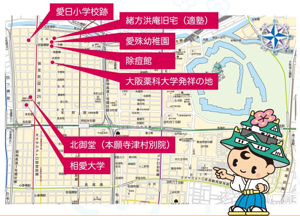 大坂の豪商たち(五同志)が設立した「懐徳堂」、民衆に漢字を教えた「泊園書院」など、これらは世の中をよくしたいという強い意志を持った民間人らによってできた教育機関で、その意思は、のちに設立された大学などにも受け継がれています。この他にも船場周辺には多くの私塾・学問所、教育施設がつくられ、商業や医療、文化など様々な分野で活躍する人材を日本や世界に送り出してきました。