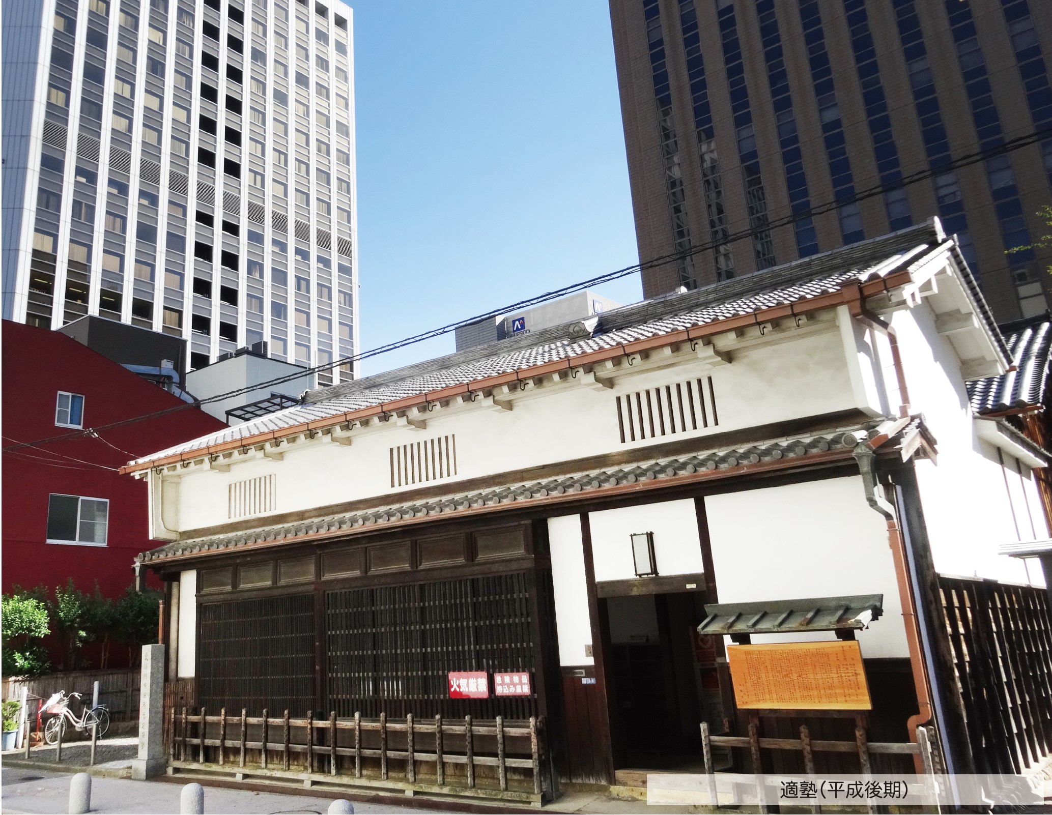 「適塾」は、緒方洪庵が江戸末期の天保9(1837)年に創設した蘭学塾で、福沢諭吉ら明治時代に活躍する名士を育て、いまも中央区北浜に築後200年以上の姿をとどめています(重要文化財)。