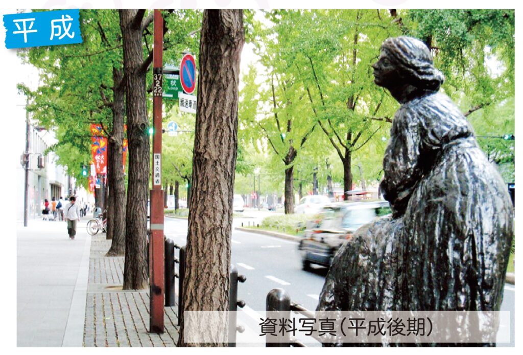 御堂筋を彩るイチョウ並木は御堂筋の完成と共に植えられたもので、「大阪みどりの百選」や「大阪市指定文化財」に指定され、今も道行く人の目を楽しませています。