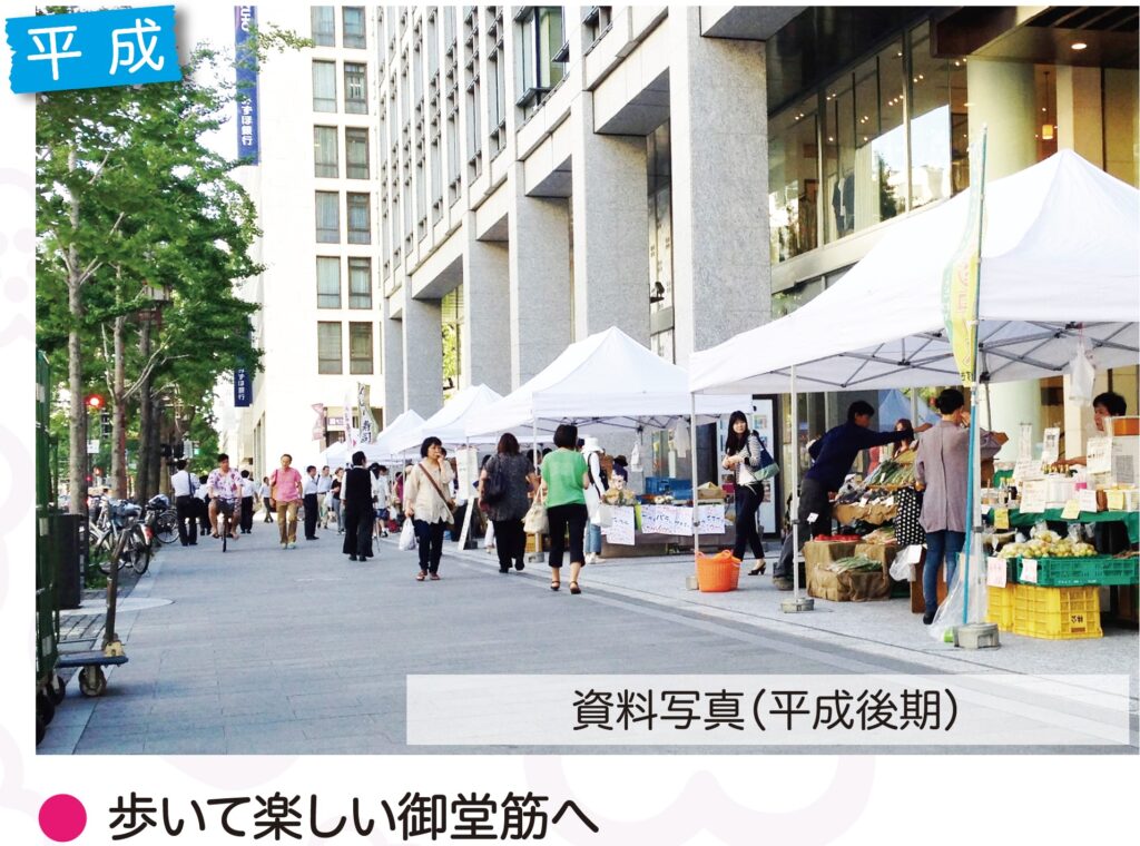 16世紀末、大坂城築城とほぼ同時期に御堂筋周辺の開発が始まり、東西の「通り」と、南北の「筋」による市街地が形成されました。